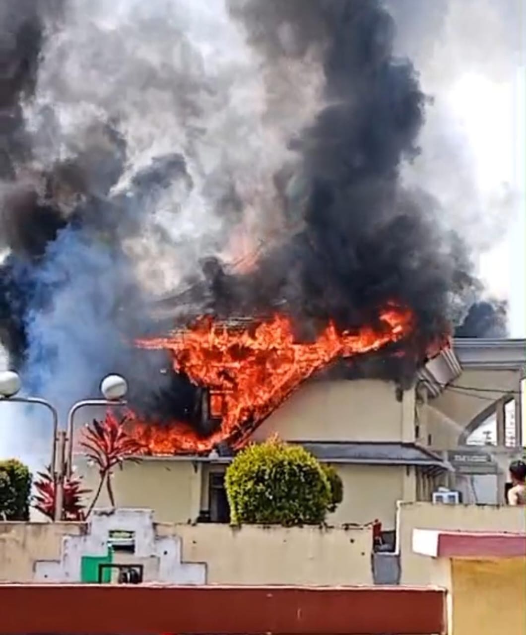 TERNATE, DM- Selasa pagi, (18/11/2025), (Asrama Haji Transit Ternate biasanya berlangsung tenang. Namun situasi berubah drastis ketika asap tebal tiba-tiba mengepul dari lantai dua gedung Musdalifah, memicu kepanikan warga sekitar. Jam di ponsel saksi mata, Alan, menunjukkan pukul 10.38 WIT saat percikan api pertama terlihat di atap bagian kanan bangunan.
