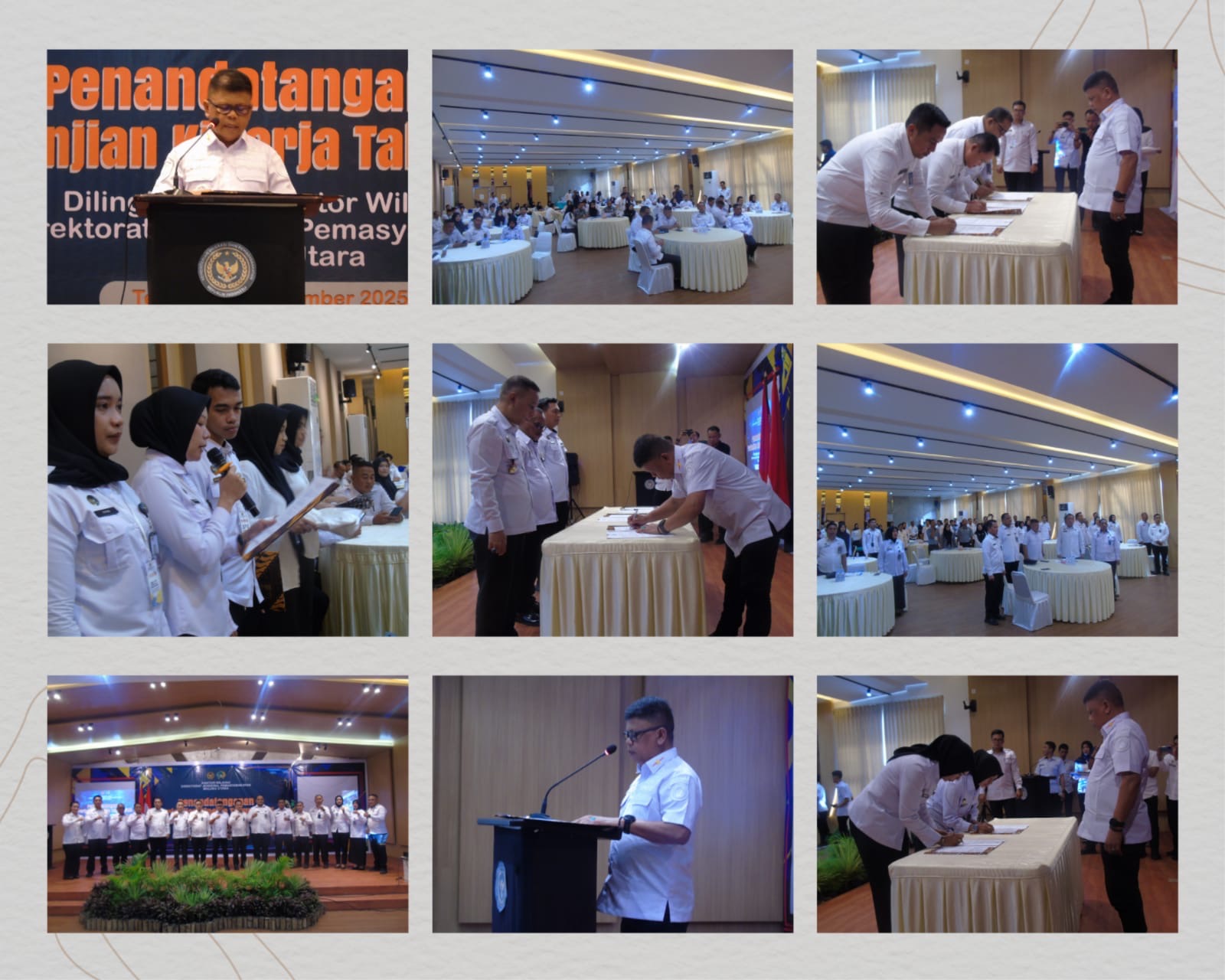 TERNATE, DM- Kantor Wilayah Direktorat Jenderal Pemasyarakatan (Ditjenpas) Maluku Utara melaksanakan penandatanganan Perjanjian Kinerja Tahun 2025 dengan seluruh Kepala Unit Pelaksana Teknis (UPT) Pemasyarakatan se-Maluku Utara. Kegiatan berlangsung pada Selasa (25/11/2025) di Ballroom Waterboom Ternate.