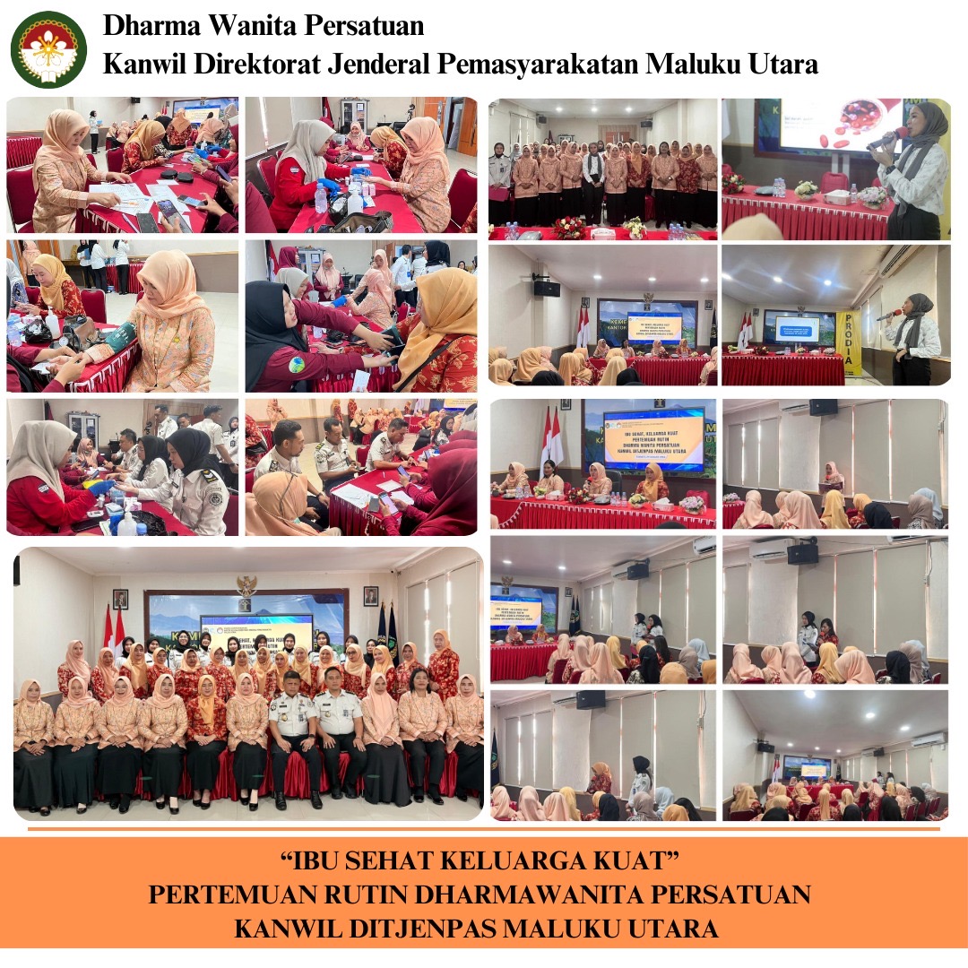 TERNATE. DM — Dharma Wanita Persatuan (DWP) Kantor Wilayah Direktorat Jenderal Pemasyarakatan (Ditjenpas) Maluku Utara menggelar pertemuan rutin yang dirangkaikan dengan pemeriksaan kesehatan gratis dan penyuluhan hidup sehat, Kamis (29/1/2026), di Aula Gamalama Kanwil Ditjenpas Maluku Utara.