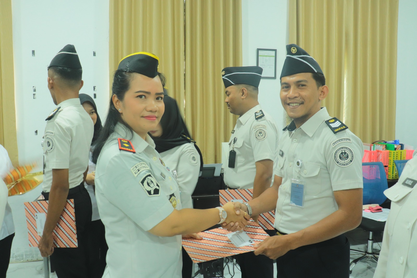 TERNATE, DM— Lembaga Pemasyarakatan (Lapas) Perempuan Kelas III Ternate melaksanakan penyerahan Surat Keputusan (SK) serta penyematan tanda pangkat reguler kepada 27 pegawai, Selasa (7/4/2026), di Ruang Tata Usaha.